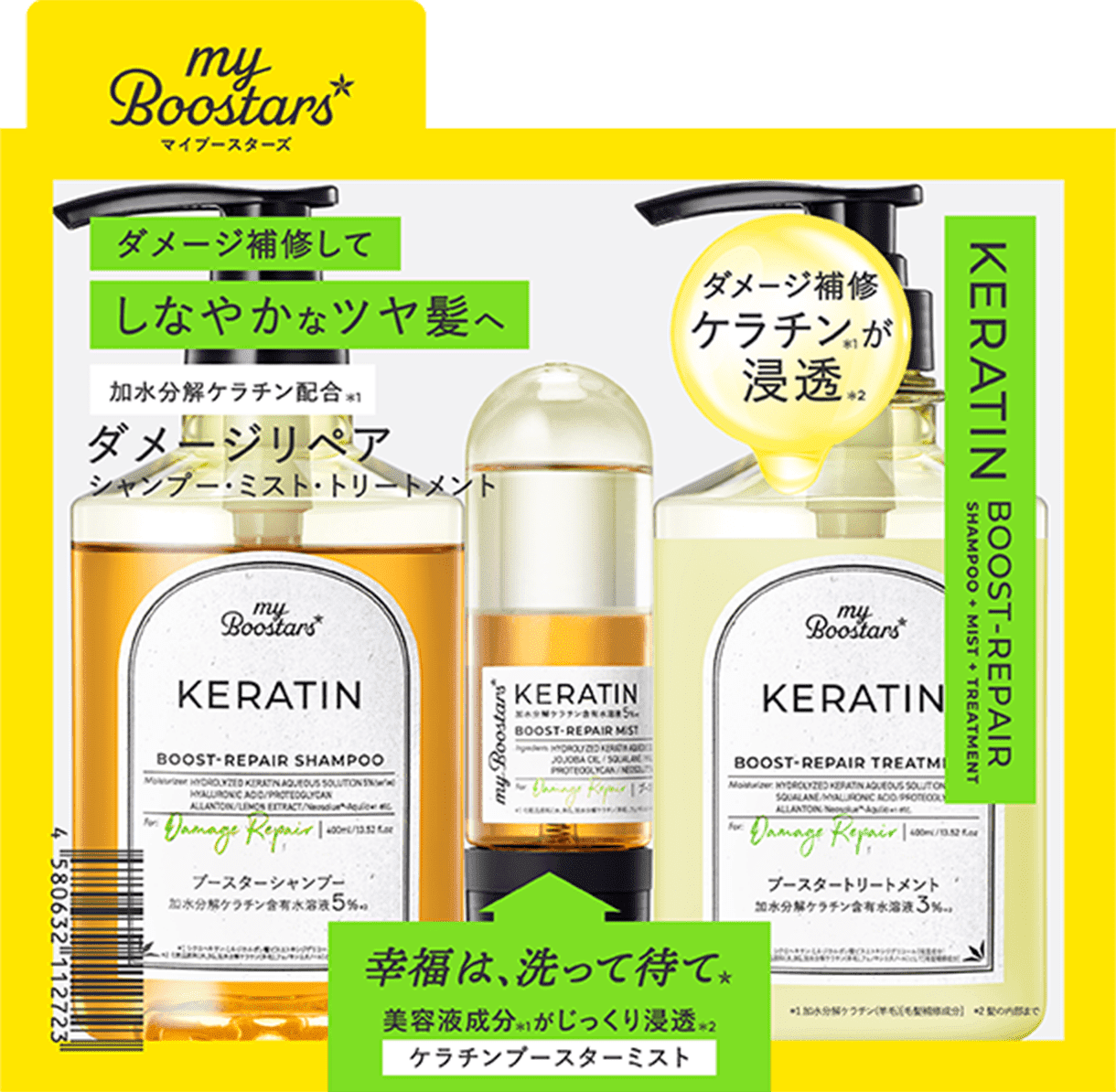 ※1 加水分解ケラチン(羊毛)または加水分解コラーゲン[毛髪補修成分]